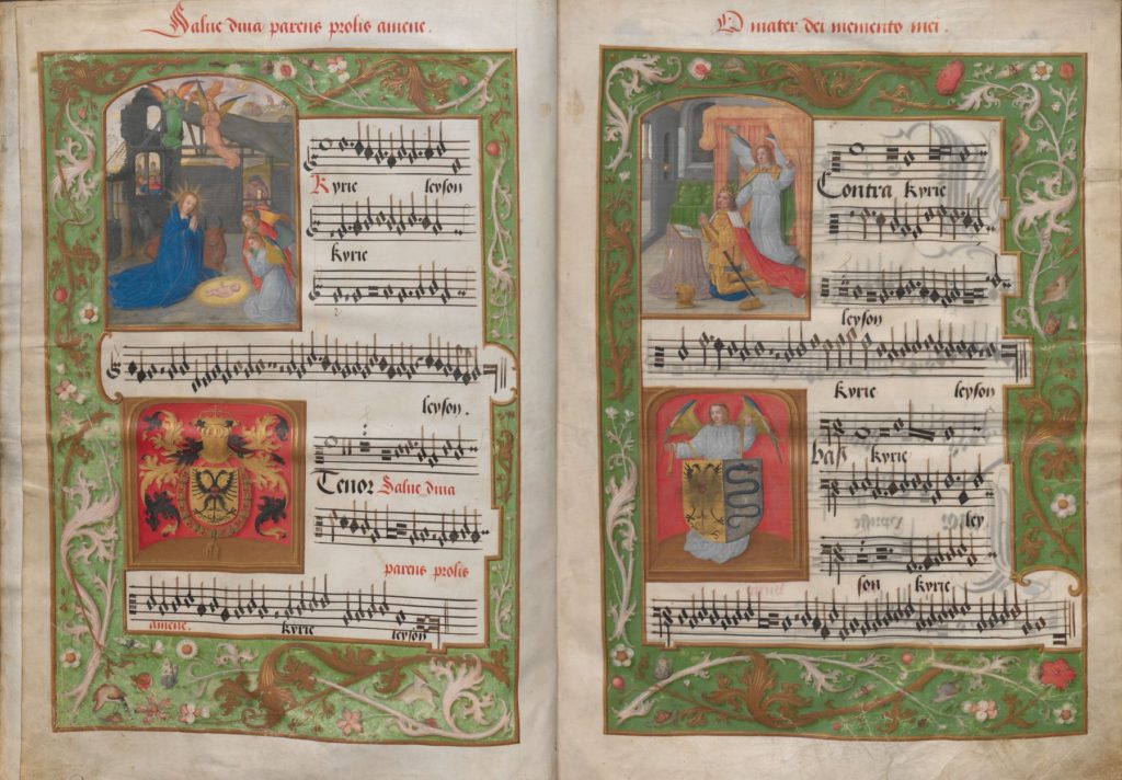 The beautiful manuscript version (Choirbook, Petrus Alamire) was offered as a gift to the Habsburg emperor.